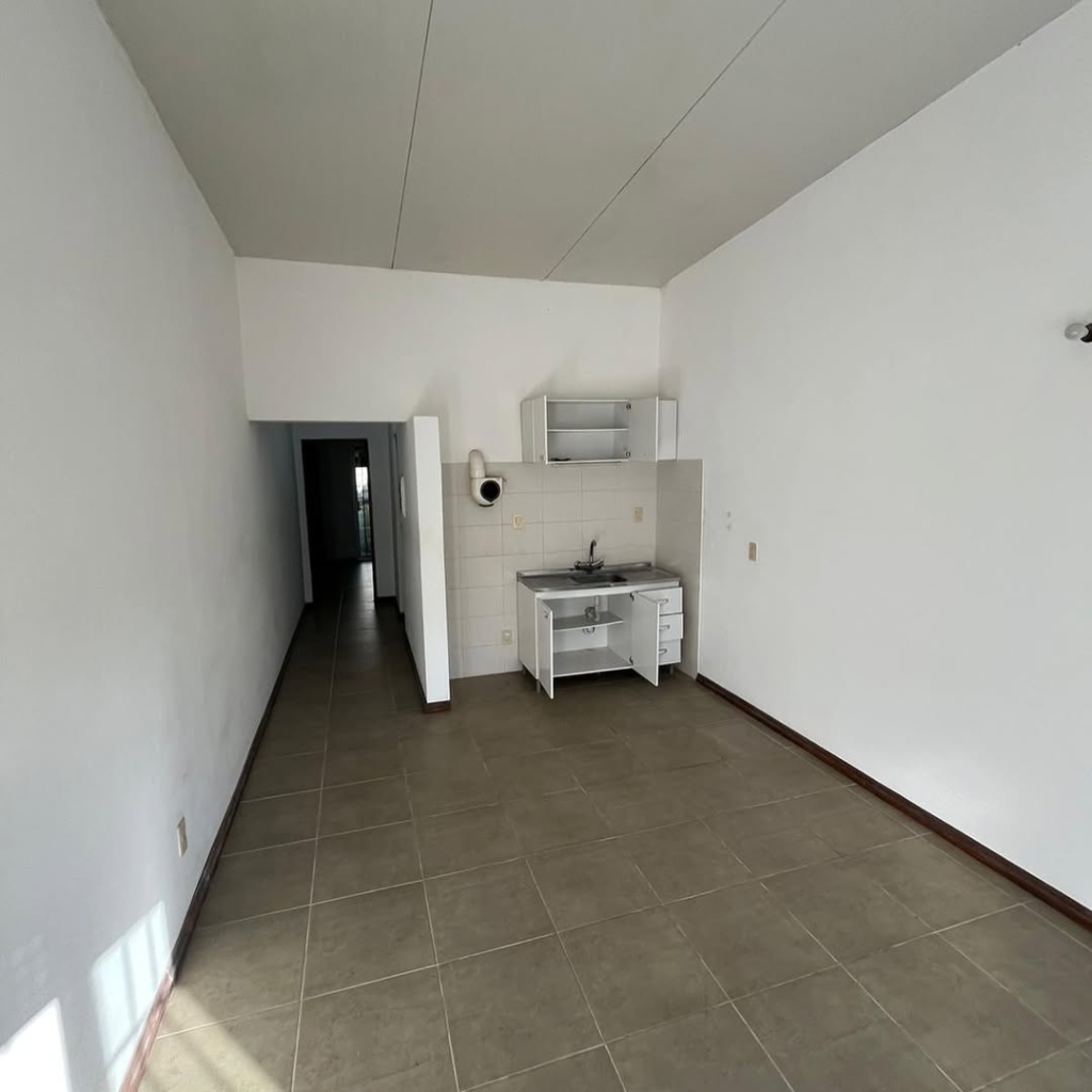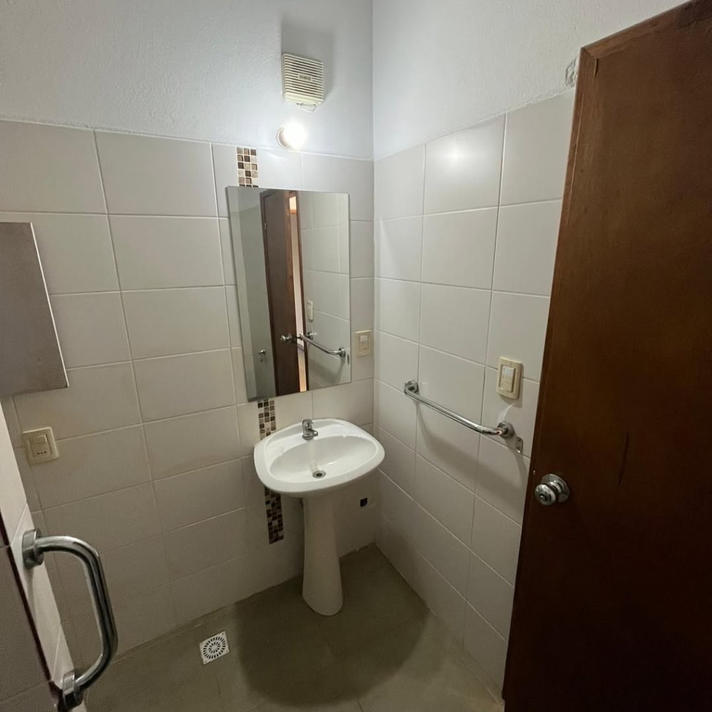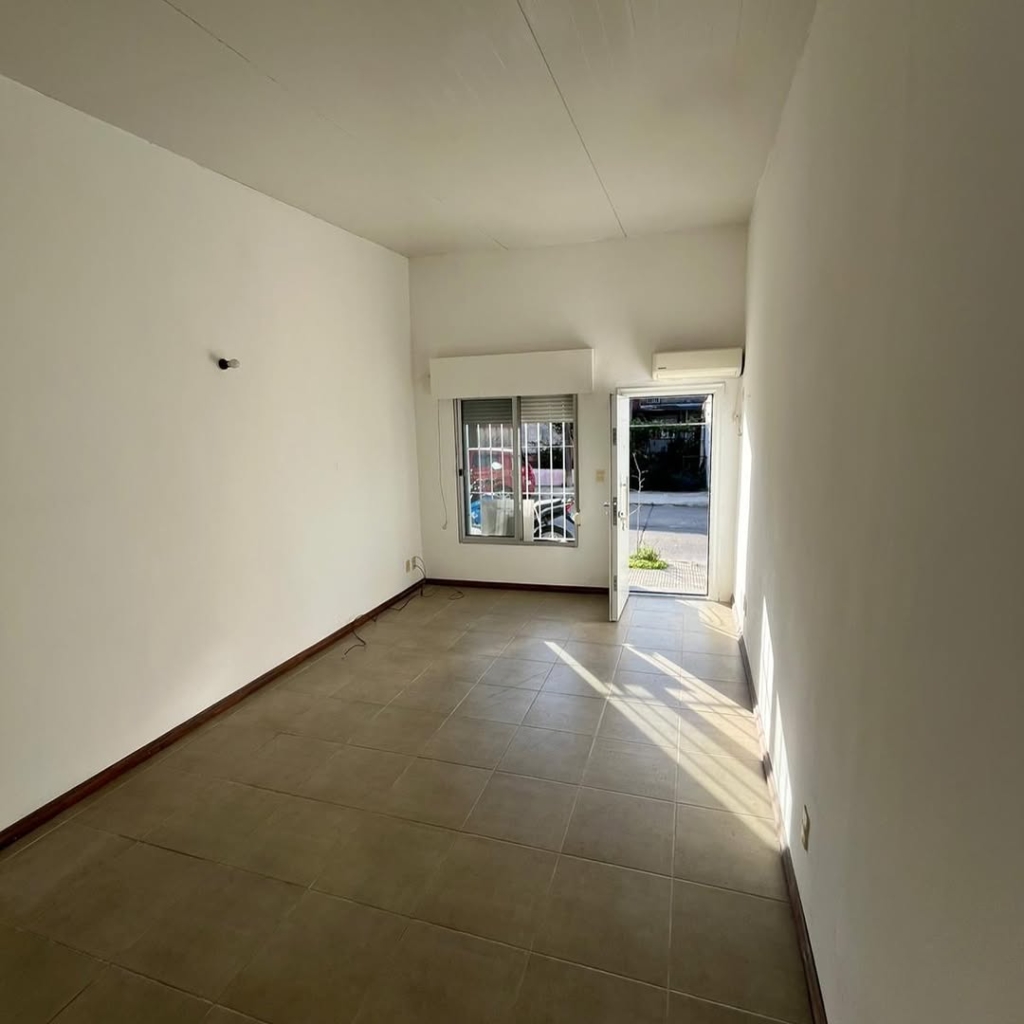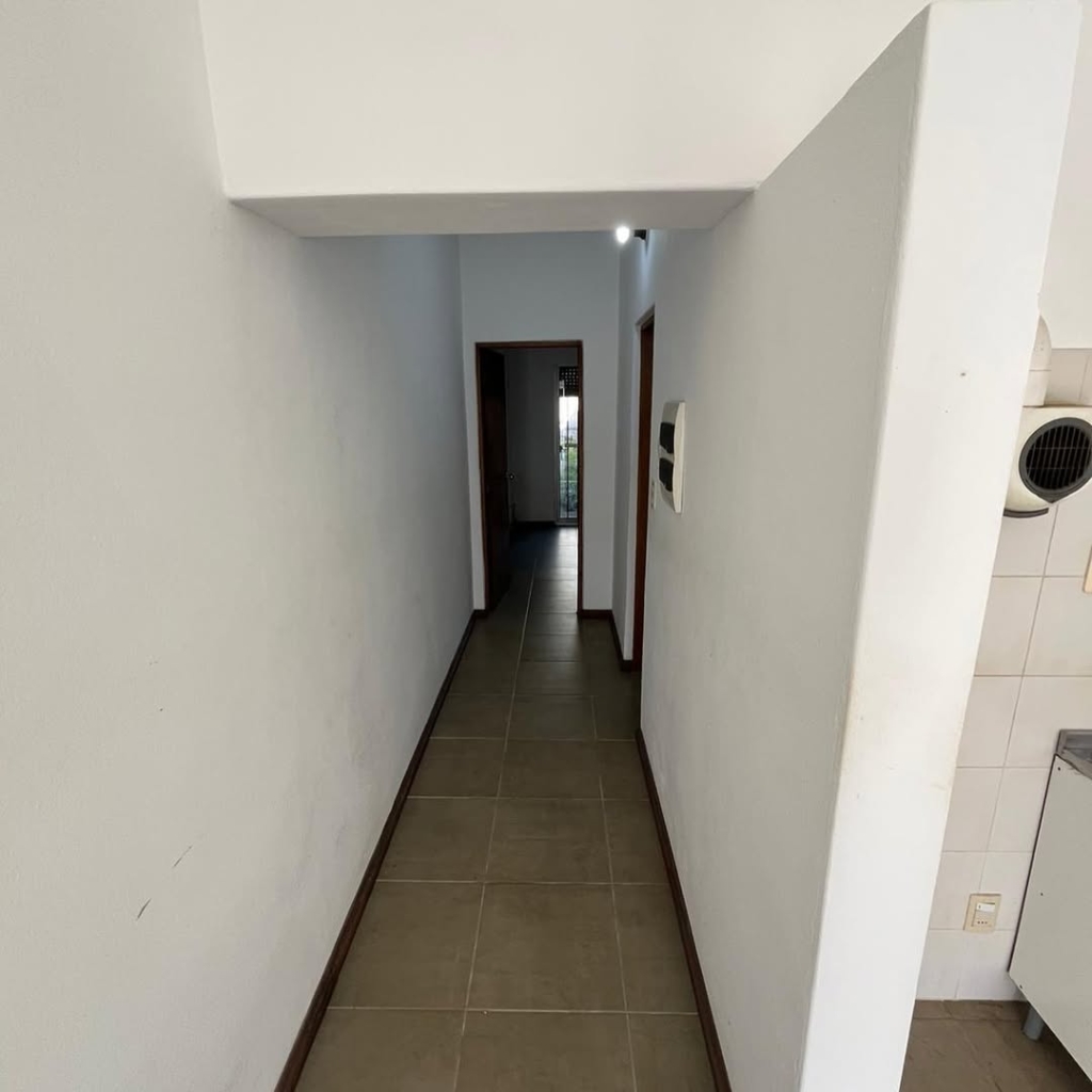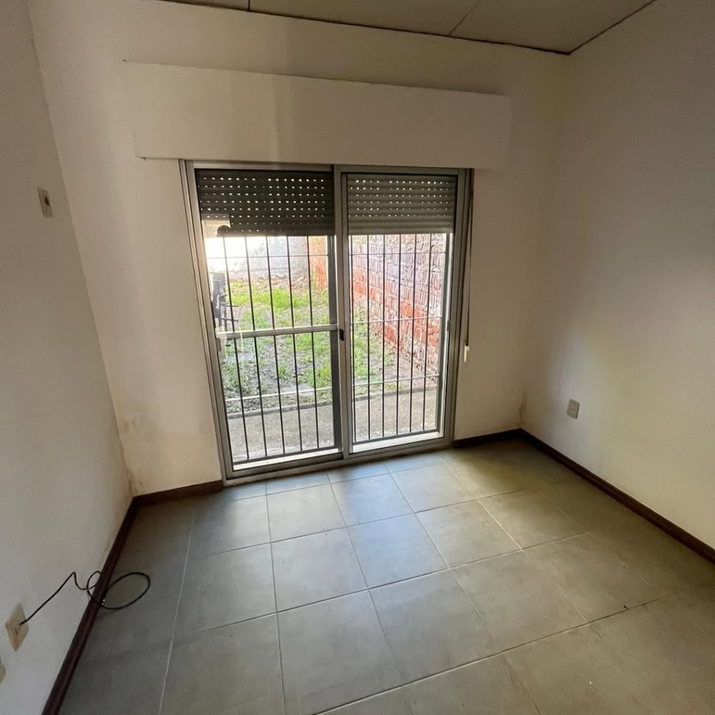Cocina integrada a ambiente, aire acondicionado, baño, 1 dormitorio con placard y puerta, ventana corrediza con reja a patio. Patio todo delimitado por muro.